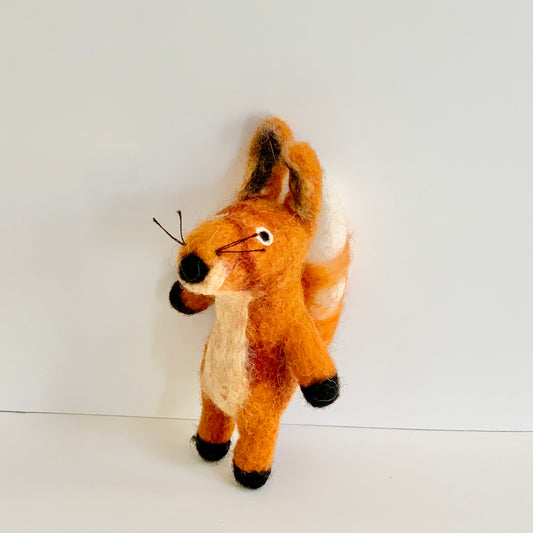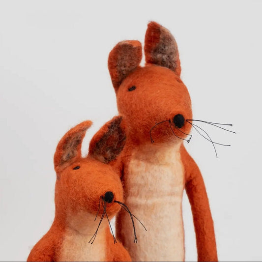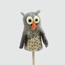 Handmade Felted Gnome Finger Puppet - Brown Hat