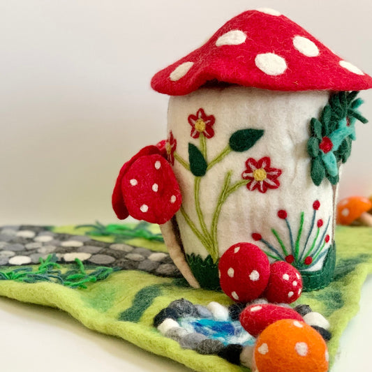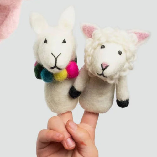 Handmade Felted Gnome Finger Puppet - Green Hat