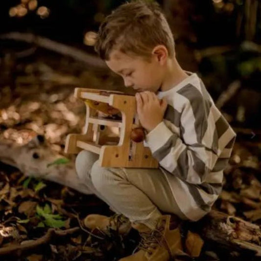 Nanchen Oak Baby Rattle in Bark Bed - Stripes
