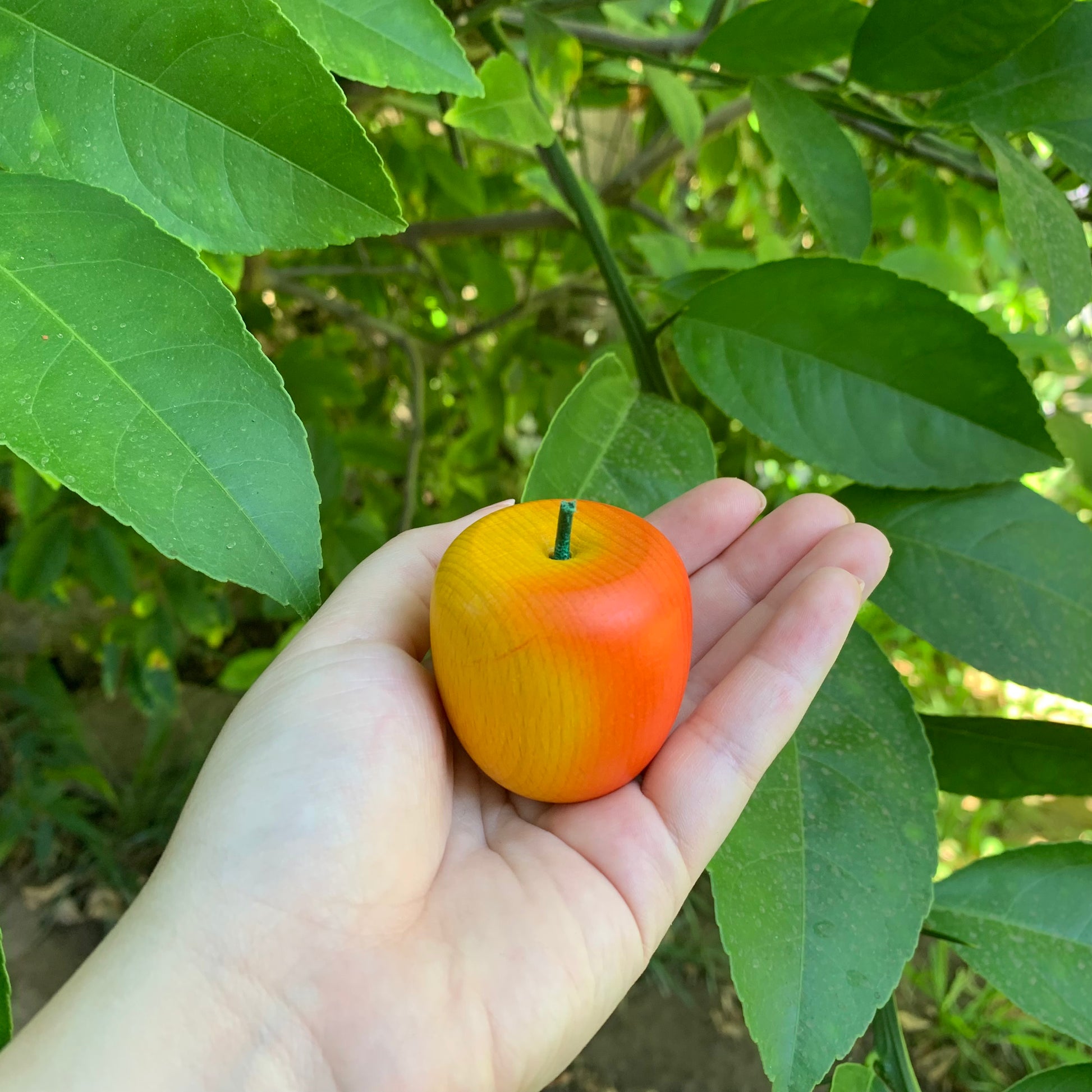 This little wooden apple is beautifully painted with a mix of yellow and red. Resembles a small Fuji apple. Even the stem looks real. Sized for small hands, it's perfect for kids to share with friends or dolls. A great addition to a play kitchen or market. Made in Germany of sustainable beech wood with a non-toxic water-based finish.