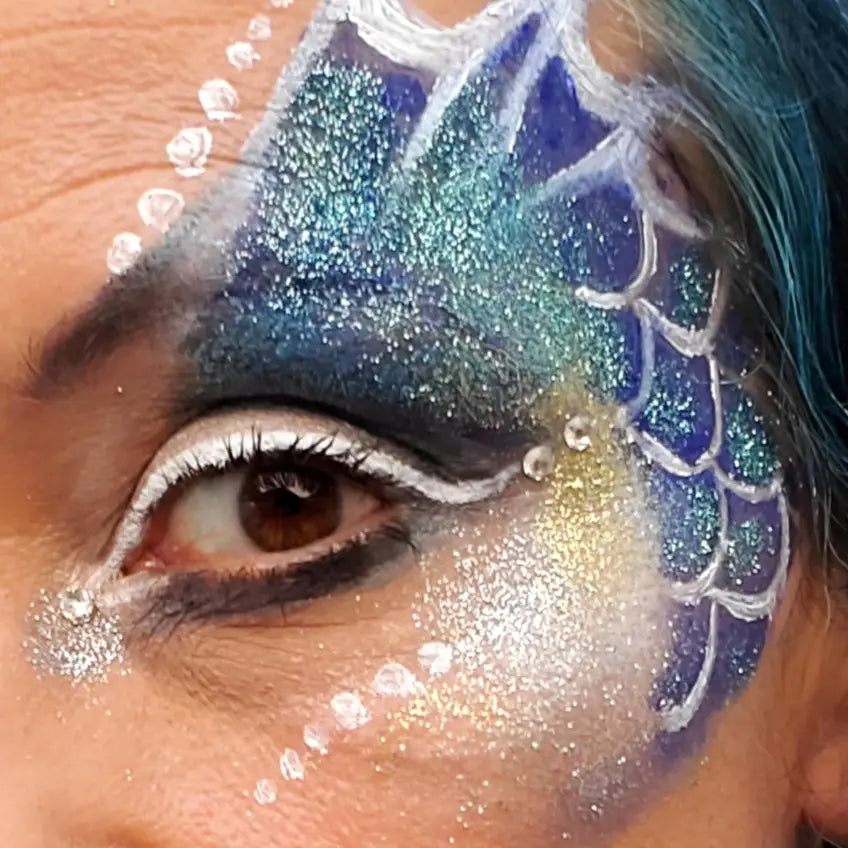 Application Tips: Dab finger in glitter and dab on still wet face paint on face to add a touch of sparkle. Or apply aloe vera gel to the face/body and dust glitter onto that. Add another coat of aloe vera gel if you want it to be extra durable.