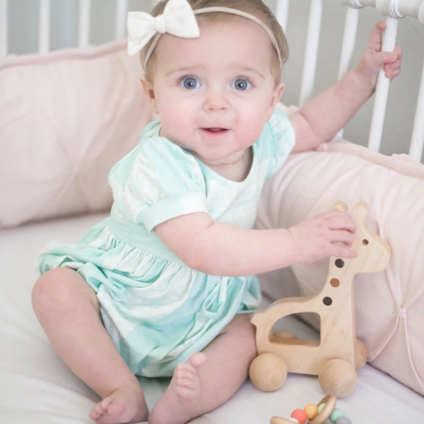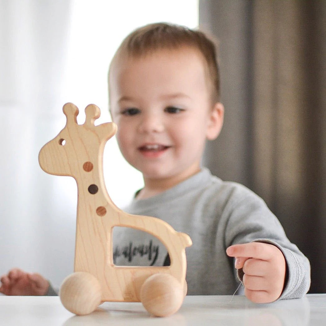Pushing and pulling this rolling giraffe on wheels helps to develop motor skills and hand-eye coordination in babies and toddlers.