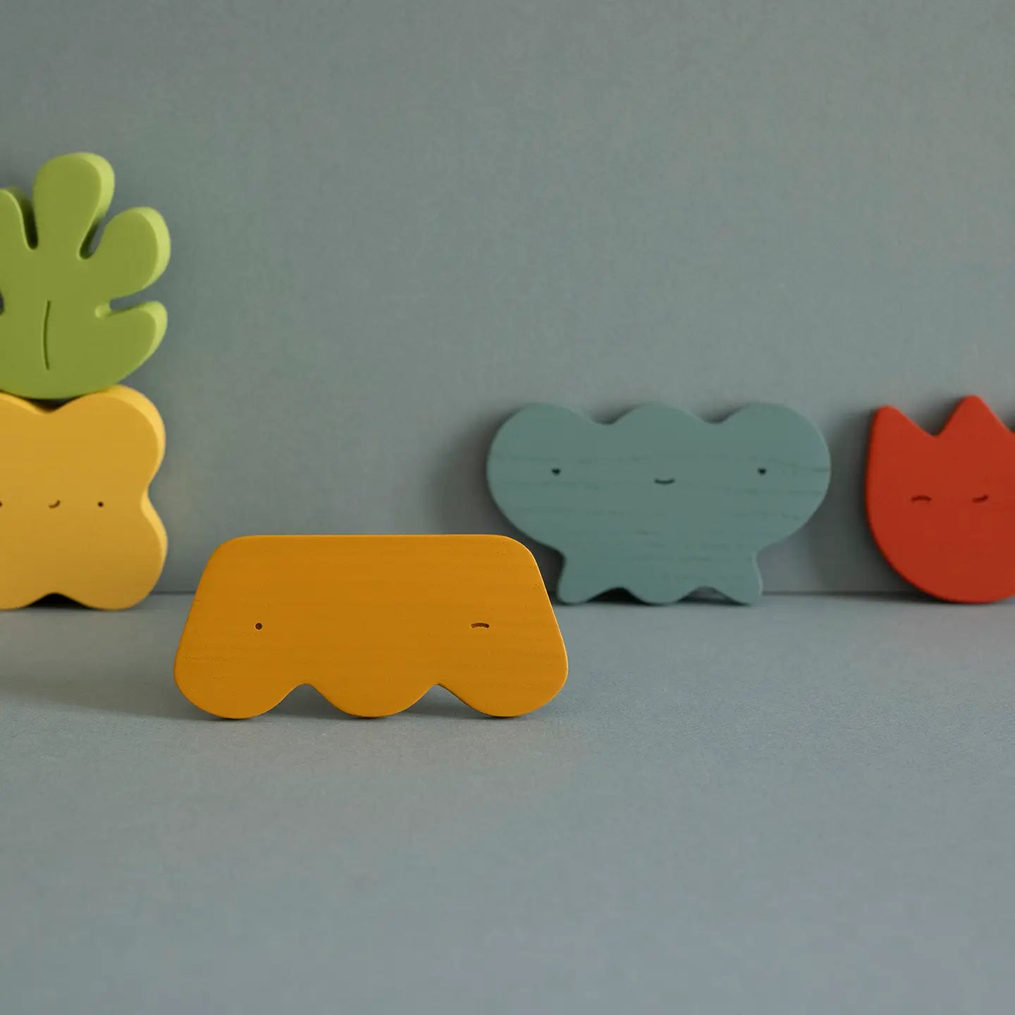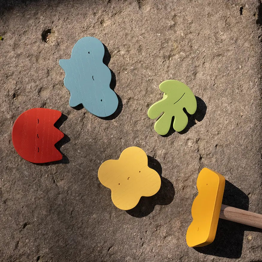 Create patterns in the sand with this wooden play set. The simple flower and herbal shapes inspire creativity and motor skill development. Use the flowers to stamp playful patterns in the sand. Scrape the sand using the rake and flower-shaped spatulas. Raking designs in the sand can have a calming effect and the flower shapes are also fun for stacking and imaginative play. Store all parts in the included natural cotton bag and carry everything easily to the beach or sandbox. Encourage outdoor and active play with this unique wooden sand playset.